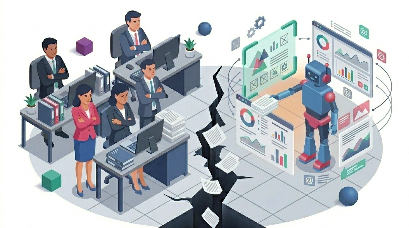 This isn't about the early days of getting used to a new tool. It's not "resistance to change." Employees are using AI in their daily work and increasingly doubt it's worth anything. The gap between adoption and trust keeps getting wider. Let's break down how that happened.